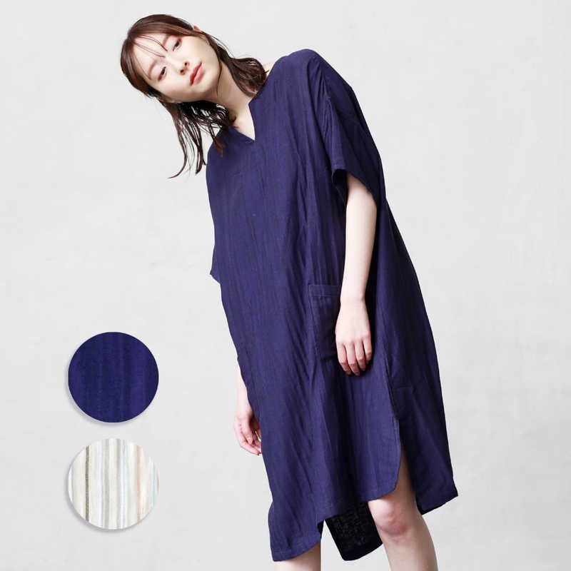 タオル美術館 cococi LDK レディースガーゼルームワンピース Vネック Lサイズ ベージュ